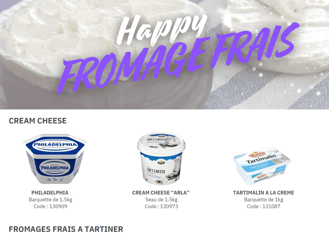 Découvrez toutes nos nouveautés NOUVEAUTES VDB News Notre sélection Octobre 2025 VDB News Notre sélection Septembre 2025 VDB News Notre sélection Avril 2025 VDB News Notre sélection Mai 2025 VDB News Notre sélection Juin 2025 VDB News Notre sélection Janvier 2025 VDB News Notre sélection Février 2025 VDB News Notre sélection Mars 2025 Nouvel An Chinois 2025 Notre sélection THEMATIQUES HAPPY SCHIACCIATA Le pain italien idéal ! HAPPY MINI SALES GARNIES Pour vos buffets ! HAPPY AUTOURS DU CAFE Pour les bords d’assiettes HAPPY MINI A GARNIR Notre sélection en MINI A GARNIR HAPPY FROMAGE FRAIS Pour apporter du touche de frais HAPPY AVOCAT Tendance! HAPPY MADELEINES Pur beurre et Gourmands à souhait ! HAPPY HOUMOUS/TZAZIKI Les préparations du Sud ! HAPPY SAUMONS Irremplacables ! HAPPY LAITS VEGETAUX Pour vos boissons favorites HAPPY MIX GLACES Glaces à l’italienne HAPPY TAPENNADE Pour sublimer vos sandwiches ! HAPPY FRITERIE De chez nous ! HAPPY COOKIES Notre selection « Back Europ » HAPPY SOUPES Elles sont bonnes et BIO ! HAPPY LEGUMES Pour agrémenter vos Salades ! HAPPY HUILES DE FRITURE Notre Sélection D’Huiles ! HAPPY MELANGES GRAINES Pour sublimer vos Pains ! HAPPY FRUITS D’ACCOMPAGNEMENT Selection Fruits ANDROS ! HAPPY PAINS BURGER Gamme pour vos Burger ! HAPPY RIZ Sélection riz ! HAPPY FRITES Selection Frites ! HAPPY CACAHUETES Gamme Cacahuètes ! HAPPY BANDES DESSERT Nos Desserts ! HAPPY LEVAIN Gamme Levain « Lesaffre » HAPPY PÂTES CUITES Gamme Pâtes Cuites HAPPY FONDS SAUCE Pour vos Sauces ! HAPPY CHEDDAR Sélection de notre offre Cheddar HAPPY PRALINE Gamme Praliné HAPPY PASTE TIGER Pour personnaliser vos pains ! HAPPY FINGER Sélection des Fingers Food HAPPY VANILLE Notre offre Vanille ! HAPPY BARISTA Gamme Monin pour vos boissons HAPPY STEAKS Sélection de Steaks spéciaux pour Burger Gamme Glaçages Découvrez notre gamme de Glaçages Fromages VAUBERNIER Notre sélection de fromages