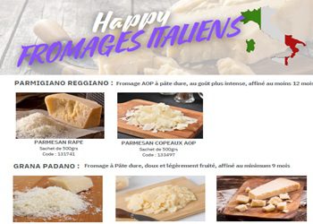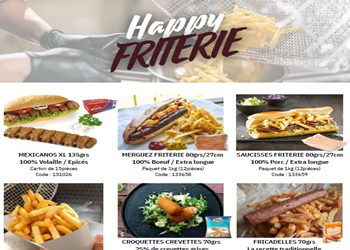 Découvrez toutes nos thématiques THEMATIQUES HAPPY NEW YORK ROLLS Ultra gourmand ! HAPPY BONDUELLE Pratique et savoureux ! HAPPY PIZZA DONUT Saveurs italiennes en format ludique ! HAPPY TARTELETTES Toute la gourmandise réunie ! HAPPY FROMAGES ITALIENS Le goût de l’Italie! HAPPY MOZZARELLA Délicate et raffinée ! HAPPY JOMO La boisson sans compromis! HAPPY CREPES PANCAKES A faire sauter ! HAPPY SMOOTHIES Maîtriser l’art de préparer des smoothies ! HAPPY SCHIACCIATA Le pain italien idéal ! HAPPY MINI SALES GARNIES Pour vos buffets ! HAPPY AUTOURS DU CAFE Pour les bords d’assiettes HAPPY MINI A GARNIR Notre sélection en MINI A GARNIR HAPPY FROMAGE FRAIS Pour apporter du touche de frais HAPPY AVOCAT Tendance! HAPPY MADELEINES Pur beurre et Gourmands à souhait ! HAPPY HOUMOUS/TZAZIKI Les préparations du Sud ! HAPPY SAUMONS Irremplacables ! HAPPY LAITS VEGETAUX Pour vos boissons favorites HAPPY MIX GLACES Glaces à l’italienne HAPPY TAPENNADE Pour sublimer vos sandwiches ! HAPPY FRITERIE De chez nous ! HAPPY COOKIES Notre selection « Back Europ » HAPPY SOUPES Elles sont bonnes et BIO ! HAPPY LEGUMES Pour agrémenter vos Salades ! HAPPY HUILES DE FRITURE Notre Sélection D’Huiles ! HAPPY MELANGES GRAINES Pour sublimer vos Pains ! HAPPY FRUITS D’ACCOMPAGNEMENT Selection Fruits ANDROS ! HAPPY PAINS BURGER Gamme pour vos Burger ! HAPPY RIZ Le goût simple du riz ! HAPPY FRITES Selection Frites ! HAPPY CACAHUETES Gamme Cacahuètes ! HAPPY BANDES DESSERT Nos Desserts ! HAPPY LEVAIN Gamme Levain « Lesaffre » HAPPY PÂTES CUITES Gamme Pâtes Cuites HAPPY FONDS SAUCE Pour vos Sauces ! HAPPY CHEDDAR Sélection de notre offre Cheddar HAPPY PRALINE Gamme Praliné HAPPY PASTE TIGER Pour personnaliser vos pains ! HAPPY FINGER Sélection des Fingers Food HAPPY VANILLE Notre offre Vanille ! HAPPY BARISTA Gamme Monin pour vos boissons